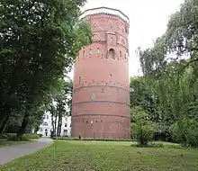 Wasserturm Wilhelmshaven (Wilhelmshaven Water Tower) is a 42 meters tall landmark of Wilhelmshaven in Lower Saxony, Germany. The tower was built in the years of 1910-11 as the third water tower of Wilhelmshaven, and still functions as an important part of the town's water supply. It was originally constructed with a suspended drinking water storage element consisting of two alloyed steel chambers. Both chambers could contain between 800 and 1200 cubic meters of water.[1]