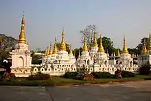 Wat Phra Chedi Sao Lang (Thai: วัดพระเจดีย์ซาวหลัง, literally 'monastery of twenty stupas' in Lanna Thai) is a Buddhist temple in Lampang, Thailand.[1] The temple is located approximately 1.5 kilometres (0.93 mi) north of Lampang, and is noted for its series of 20 chedi arranged in a courtyard.[1] The chedis' bases are built in the Lan Na style, and whose upper parts are built in the Burmese style.[1] The temple also houses a 15th-century solid gold Buddha image that weighs 1,507 kilograms (3,322 lb).[2]