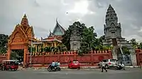 Wat Ounalom (Khmer: វត្តឧណ្ណាលោម, UNGEGN: Vôtt Ŭnnaloŭm, ALA-LC: Vatt Uṇṇālom, IPA: [ʋɔət ʔunnaːloːm]; also Wat Unnalom and several other spellings) is a wat located on Sisowath Quay in Phnom Penh, Cambodia, near the Royal Palace of Cambodia.[1] As the seat of Cambodia's Mohanikay Order, it is the most important wat of Phnom Penh, and the center of Cambodian Buddhism. It was established in 1443 and consists of 44 structures.[2] It was damaged during the Khmer Rouge period but has since been restored.[2] The main complex houses a stupa that contains what is believed to be an eyebrow hair of The Buddha and an inscription in Pali.[2]