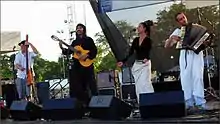 Their lyrics include elements of Arabic, Hebrew, Spanish, Yiddish, Tamashek, French, and English.[1]