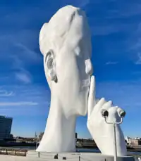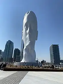 Water's Soul is a sculpture along the Hudson River Waterfront Walkway in the Newport section of Jersey City.[1] It depicts a woman with closed eyes holding a finger to her lips in a state of silent contemplation and self-reflection. The work was conceived by Jaume Plensa and commissioned by LeFrak and Simon Property Group. Made of polyester resin, fiberglass, and marble dust, the work is white and stands 80 feet (24 m) tall. It faces the Hudson River and the New York City skyline.[2]<[3][4][5] It was created at Plensa's Barcelona studio and shipped in 23 containers, each 40 feet (12 m) feet long, to the site.[6]
