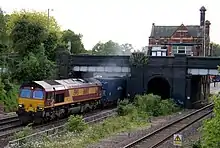In 1346 they built their own chapel and were granted a license to have their own priest, although they remained subject to the mother church of Aston until 1871.[4] The original chapel no longer remains but the graveyard in Old Church Road survives, including the stone village cross dating from 1347.[3] The present Parish Church of St Peter and St Paul was built in 1879 for £4000 to a design by Bateman and Corser.[5] It had a spire which was dismantled in 1987 after being declared unsafe[6][7] due to the effects of atmospheric pollution. Until the 1840s Water Orton was mainly an agricultural village, but this changed with the coming of the railways. The first one was from Birmingham New Street to Derby via Water Orton, Coleshill, Whitacre Heath and Tamworth. Later a junction was constructed and another line was built via Kingsbury to Tamworth. The lines pass through the centre of the village.