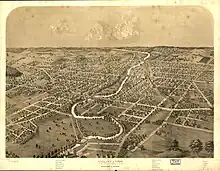 Prior to the 1800s, Native Americans primarily inhabited the land around Ypsilanti and the river.[14][15] The Potawatomi and Sauk trails passed by what is currently the Water Street area.[16] Native peoples were removed from the area starting in 1816 and continuing until 1830.[17] The first settler occupants on the land of the Water Street Redevelopment area were in the 1800s.[18] Harwood's flouring mill was constructed in 1829 and positioned along the river just south of Congress Street, now known as Michigan Avenue.[19] In the second half of the 19th century, Alva Worden and his brothers John and Chauncey lived in mansions on this land and manufactured their invention, a new whip socket, in the same area.[20][21][22][23]
