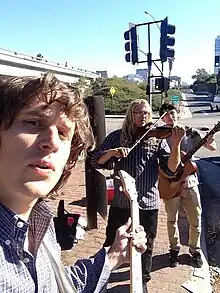 During this time, Water Tower would spend 20–40 hours a week busking on the side of various freeways and off-ramps around Los Angeles to support themselves.[13][14] In 2016 Feinstein was hired to play fiddle in Coffey Anderson's band, and he appeared in Anderson's Netflix reality show Country Ever After.[8][7] Water Tower also appeared as the wedding band in an episode of another Netflix reality show called Say I Do in 2019.[8] That same year, Feinstein worked as co-producer on Rosy Nolan's EP Footprints and Broken Branches with punk musician Tim Armstrong of the band Rancid.[15] He also played fiddle, mandolin, guitar, bass, and provided backing vocals for the album.
