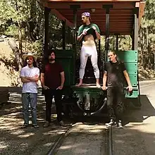 It was while busking that Water Tower met another new member, Jesse Blue Eads, a young banjo player and electric bassist who had dropped out of college to pursue music.[21] One day he got a call from a friend, letting him know that someone was in his usual busking spot in Hermosa Beach. It turned out to be the band and the four of them became fast friends. They asked Eads to join them on their next tour of the West Coast in summer 2021.[22] One of the shows on this tour was presented by Thompson Guitars near their workshop in Sisters, Oregon.[19] Feinstein, who plays a custom Thompson dreadnought with an extra-large sound hole inspired by bluegrass legends Clarence White and Tony Rice, is a featured musician on the Preston Thompson Guitars website.[23][19][8] They also played at Summer's End – The Draper Rendezvous festival in Hailey, Idaho with Sarah Shook & the Disarmers and John Craigie.[24] When they returned from touring, Feinstein and Drinkard started hosting a monthly bluegrass open mic event at Silverlake Lounge in Silver Lake called “Hillbilly Hype House”.[17][8]