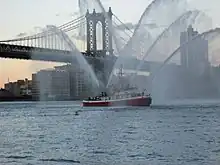 Water salutes are also used for ships and other watercraft, with water being delivered by fireboats. This is often done for the first or last visit or retirement of a senior captain, the first or last cruise of a ship, the visit of a warship, or other ceremonial occasions. A notable example was the water salute to HMS Hermes (R12) as she returned to Southampton following her part in the victory of the Falklands War.