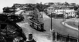 The City to Watson's Bay tram line was extended from Edgecliff to Signal Hill Station, Watson's Bay in 1903 with further extensions to Gap Park in 1909. The latter extension included a new tram terminus adjacent to The Gap and a tram cutting cut into the rock face in Gap Park that ran above and parallel to Gap Road that gradually descended to street level before terminating.[10]