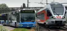 Several bus services depart from the station forecourt. Services are provided by Busbetrieb Lichtensteig–Wattwil–Ebnat-Kappel (BLWE),[3][4] Schneider Busbetriebe[5][6] and PostAuto Schweiz.[7] The bus lines are as follows: