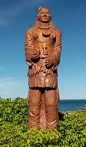 On the dock at St. Ignace and within shadow distance from the Wawatam Lighthouse is a 6 foot (1.8 m) tall wooden statue honoring Chief Wawatam which was erected in 2012 by the City of St. Ignace, Michigan. It was designed and carved by Tom Paquin and Sally Paquin, local artists.[3]