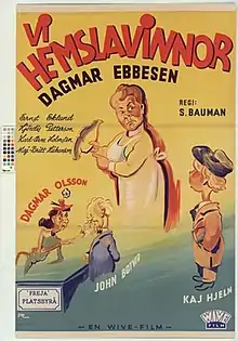 We House Slaves (Swedish: Vi hemslavinnor) is a 1942 Swedish comedy film directed by Schamyl Bauman and starring Dagmar Ebbesen, John Botvid and Ernst Eklund.[1] It was shot at the Centrumateljéerna Studios in Stockholm. The film's sets were designed by the art director Bibi Lindström. It was a remake of the 1933 film House Slaves, with Ebbesen reprising her role from the earlier film.