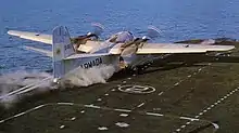 Argentine Naval Aviation Grumman S-2G Tracker taking off from the aircraft carrier ARA Veinticinco de Mayo.
