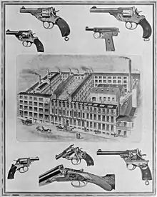 Nicknamed "the British Peacemaker" in the United States, the Mk 1 was manufactured in .450, .455 Webley, and .476 calibre and founded a family of revolvers that were the standard handguns of the British Army, Royal Navy, and British police constabularies from 1887 to 1918. The Mark VI (known as the Webley Revolver No. 1 Mark VI after 1927) was the last standard service pistol made by Webley; the most widely produced of their revolvers, 300,000 were made for service during World War I.[7]