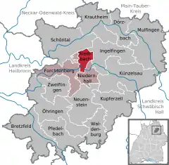 Weißbach is a town in the district of Hohenlohe in Baden-Württemberg in Germany.