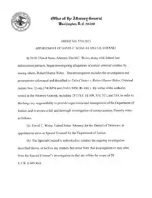 - ↑ Robertson, Nick (August 11, 2023). "Who is David Weiss, the newly appointed Hunter Biden special counsel?". The Hill.