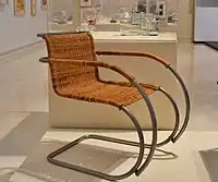 The Weissenhof chair (also called MR 10 or MR 20) is a chair designed by the German architect and designer Ludwig Mies van der Rohe, in 1927. This first, springy cantilever chair was shown at the Weissenhofsiedlung Exhibition in 1927. It was made of 25 mm steel tube and with a wicker framework proposed by Lilly Reich. The MR20 version has forearms.[1]
