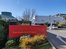 In 2016, Wellington High became the first school in Wellington to provide gender-neutral toilets.[13] WHS converted one floor's separate single sex bathrooms to two sets of gender-neutral bathrooms. The urinals were removed from the boys' bathrooms, and bins added. Signage simply says 'bathroom.' There was a lot of media surrounding the change, and WHS released a media release[14] requesting that the media accept the privacy of students, writing that they are now "getting on with the business of learning."[14] Later in 2016, Onslow College converted a block of their toilets to gender-neutral.