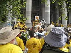 Opponents of the weir contended that the planned weir would severely damage the environment of the lakes and Coorong, and that already endangered species in the lakes and Coorong could become extinct. Sim and Muller trace the complex history of the area.[1] Lloyd argues the weir diverts attention from the real issue: the sustainability of the Murray-Darling system.[2] There was no environmental impact assessment conducted for the proposed weir. The area that would have been impacted is subject to a Ramsar Agreement,[3] as part of an international convention that aims to halt the loss of wetlands and conserve those that remain through wise use and management.