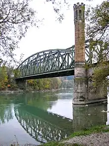 During the construction of the main line of Empress Elisabeth Railway, financial difficulties were encountered by the company. This caused a delay in the construction of the branch railway between Linz and Passau. The Bavarian Eastern Railway Company had already finished construction of the railway near the border, where the Austrian railway was supposed to be connected. On the other hand, the KEB had only undertaken project planning until the beginning of 1860. As a result, the terminus had to be changed to the Wels station because the line length was able to be shortened. The construction begann on 6 August 1860 and was completed by the KEB on 1 September 1861. It is an 81.2 km (83 km to the Passau freight yard) long double-track electrified main line. It runs through 79.6 km of Austrian territory and through 1.6 km of German territory, where it becomes the Regensburg–Passau railway in Passau station.[2]