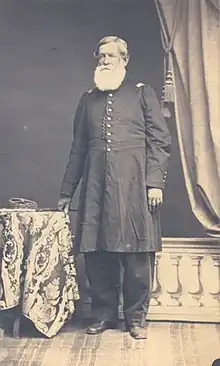 At the end of the Mitre government, he was appointed the Minister of War and Navy, and on the presidential elections of 1868 he was a vice-presidential candidate in the official formula headed by Rufino de Elizalde. They were defeated by Sarmiento, who appointed him-among other reasons of state to alleviate his dire financial situation-Minister Plenipotentiary to the Empire of Brazil but died at Rio de Janeiro on June 7, 1871, at the age of 65.[1] During his role as minister plenipotentiary, he was assisted by Leandro N. Alem, who served, for a short time, as secretary of the Argentine Legation. Years later he would write a brief biography of Paunero, whom he had met during the Paraguayan War.