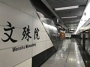 Wenshu Monastery (Chinese: 文殊院) is a station on Line 1 of the Chengdu Metro in China.[1][2] It serves the nearby Wenshu Monastery.