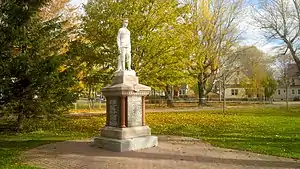 The Orangemen War Memorial in Wentworth Park commemorates members of the Orange Order from Cape Breton County who died while serving in the armed forces in World War I.[13] It was installed in the park first in 1921, at a site next to George Street, near the intersection of Argyle Street.[14]