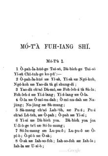- ↑ Chaò-Chḯ Yi-sû Chï-tuh Sang Iah Sìng shï: Sz̀ fuh-iang tà sź-du 'ae-djüe fa üe-tsiu t'û¹-'ò (in Wenzhounese). Dà-ìang sing-shï whaỳi yiáng-ge. 1894. p. 1.