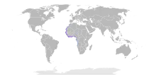 The West African crested tern is known to breed only on a few islands off the coast of Africa between Mauritania and Senegambia, though it is suspected to also breed as far east as Nigeria. In the non-breeding season it can be found along the coast from Morocco to Namibia.[5]