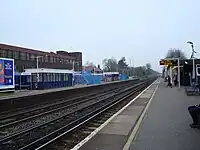 West Byfleet has commuter train services running on the London to Portsmouth main line offering stopping services to stations such as Waterloo, Clapham Junction, Wimbledon, and Weybridge (all to the NE) and Woking (to the SW). Those wishing to travel further afield or elsewhere will typically change trains at one of these stations. There are typically four trains per hour.