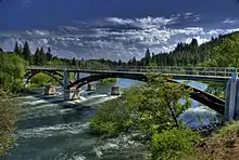There are three crossings of the Spokane River providing access into West Central. On the eastern edge of the neighborhood the Monroe Street Bridge leads into the heart of downtown, in the center the Maple Street Bridge connects the west end of downtown with West Central, and on the western edge the Sandifur Bridge provides pedestrian access into Peaceful Valley.[4]