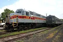 No.7706- 7706 is an EMD GP38 built in 1969 for the Penn Central Railroad as number 7706. Following the bankruptcy of Penn Central, it was absorbed into Conrail in 1976. In the mid-1990s it was purchased by PECO Energy and later transferred to the Exelon Corporation to work in the Cromby Generating Station in Phoenixville, PA. In 2012 the unit was donated to the West Chester Railroad. 7706 is currently in service.