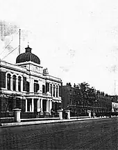 The building became the home of the Metropolitan Borough of Greenwich when it was formed in 1900. After it became inadequate for the council's needs, civic leaders decided to build a new town hall on Royal Hill and relocated there in 1939.[5][6] A room in the old town hall was allocated for use by the Local Defence Volunteers during the Second World War. On 12 July 1944, the building was badly damaged by a V-1 flying bomb, which destroyed many of the terraced houses on the site to the immediate west of the building.[7][8]