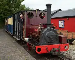 The West Lancashire Light Railway (WLLR) is a 2 ft (610 mm) narrow gauge railway that operates at Hesketh Bank,[1] situated between Preston and Southport in North West England.[2] The distance between the stations on the railway is 430 yards (393 m),[2] though track extends eastwards beyond Delph station on ledge above the old clay pit which is too narrow to contain a run round loop. An extension of up to 435 metres (1,427 ft), running along the north bank of the fishing lake has been proposed.[3] The railway has seven steam locomotives, three of which are in operating condition; two are currently being rebuilt and another is on static display. There are also two electric locomotives and many IC locomotives.[4]