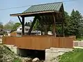 The West Liberty Covered Bridge is a covered bridge which carries West Liberty Street across Cowles Creek in Geneva, Ohio, United States. At 18 feet (5.5 m), it has been called the shortest covered bridge in the United States.[2] The bridge, one of 17 drivable covered bridges in the county, was designed by John Smolen, former Ashtabula County Engineer and the designer of the Smolen–Gulf Bridge, the longest covered bridge in the U.S., also in Ashtabula County.