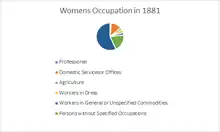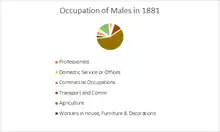 In 1881 the main employment for males was agriculture with 45 people, during this era this was the common practice and therefore this is not peculiar, however 37 females had an unknown occupation, the main occupation for females at this date was for domestic services or offices and this only had a total of 8 women which shows the inequality at the time.[10]