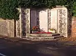 The War Memorial is constructed of brick and flint and is built into the southern perimeter wall of the Parish Church of the Holy Trinity. There are three tablets set into the front. Three steps lead up to the memorial and flower troughs sit at the foot of the World War I tablets. It stands right on the verge of the A149 and is quite precarious for anyone taking a visit to the Memorial. The inscription above the Tablets reads "They were a wall unto us both by night and day" (Bible: 1 Kings, (1 Samuel), Chapter 25, verse 16) and also "To the Men of Runton who fell". There are a total of 37 names on the tablets.