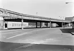 A temporary 45-foot (14 m) wide elevated street was proposed by the city between 29th Street and 37th Street to bypass the New York Central Railroad's 30th Street Yard, to provide relief before the permanent highway was finished.[31] It appears that this temporary viaduct was not built.
