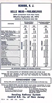 - ↑ "New Rail Schedules Set". The Philadelphia Inquirer. Philadelphia, Pennsylvania. October 2, 1992. p. 36. Retrieved October 19, 2017 – via Newspapers.com.