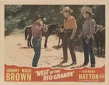 West of the Rio Grande is a 1944 American Western film directed by Lambert Hillyer. This is the tenth film in the "Marshal Nevada Jack McKenzie" series, and stars Johnny Mack Brown as Jack McKenzie and Raymond Hatton as his sidekick Sandy Hopkins, with Dennis Moore, Christine McIntyre and Lloyd Ingraham. It was released on May 22, 1938.