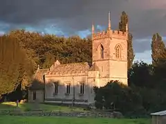 The village used to be clustered immediately around the parish church. Earthworks indicating the sites of buildings survive to the west, south and east of the churchyard.[11] However, the modern village is 220 yards (200 m) east of the church, contiguous with Middle Barton village in the Steeple Barton parish.[11] The agricultural lands of Steeple Barton and Westcott Barton were worked as a single field system. An open field system of farming prevailed in the two parishes until an Inclosure Act, for their common lands, was implemented in 1796.[2] The main road between Bicester and Enstone traverses the parish from east to west. It was turnpiked in 1793 but was disturnpiked in 1876[2] and is now classified the B4030 road.