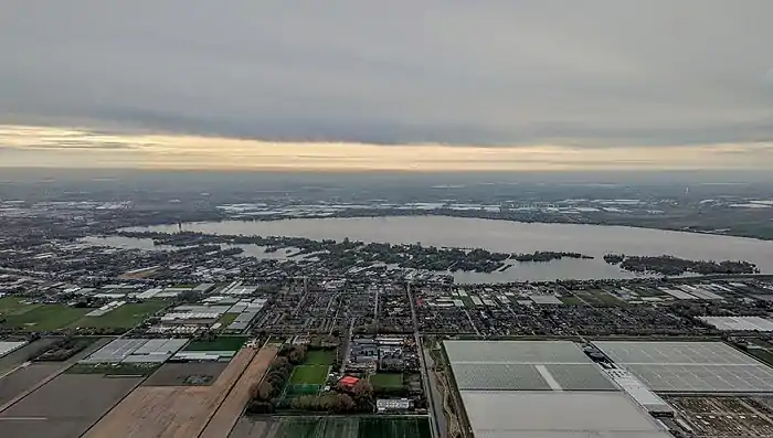 Towns situated on the lakefront include Aalsmeer, Kudelstaart, Burgerveen, Leimuiden, and Rijsenhout.