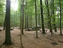 In the middle of the Westerberg woods are inter alia a megalithic grave or dolmen, the Steinofen and a "stone garden", a collection of 106 examples of glacial erratics. A nunnery that later moved to Himmelpforten was originally seated on the hill.[1] The convent owned Westerberg hill with its forest.[1]