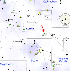 - ↑ Straižys, V.; et al. (1996). "Interstellar extinction in the area of the Serpens Cauda molecular cloud". Baltic Astronomy. 5 (1): 125–147. Bibcode:1996BaltA...5..125S. doi:10.1515/astro-1996-0106.