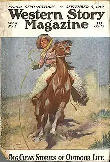 Western Story Magazine was a pulp magazine published by Street & Smith, which ran from 1919 to 1949.[1] It was the first of numerous pulp magazines devoted to Western fiction. In its heyday, Western Story Magazine was one of the most successful pulp magazines; in 1921 the magazine was selling over half a million copies each issue.[2] The headquarters were located in New York City.[3]