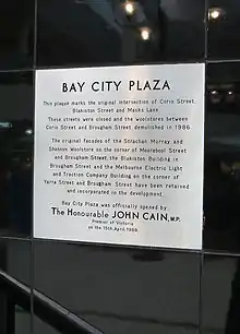 - ↑ "WESTFIELD TRUST AND PERRON GROUP ANNOUNCE JOINT VENTURE FOR BAY CITY PLAZA, GEELONG". Archived from the original on 30 September 2007. Retrieved 1 July 2007.