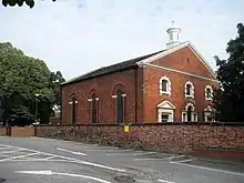 In 1752 the chapel was replaced by the current building. Later in the century, the congregation joined the Unitarian movement.[2] It is built of brick, and is two storeys high and three bays long. It is in the Doric order, with a cupola. There are several Venetian windows on the ground floor. Inside the chapel is plain,[3] with a pulpit of 1737 moved from the former chapel, and an organ constructed in 1847.[2] Most of the woodwork dates from the late 19th century.[3] There are catacombs under the chapel, which are occasionally opened to the public.[4][5]