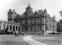 Westonbirt House is a country house in Gloucestershire, England, about 3 miles (5 km) southwest of the town of Tetbury. It belonged to the Holford family from 1665 until 1926. The first house on the site was an Elizabethan manor house. The Holfords replaced it first with a Georgian house, and then Robert Stayner Holford, who inherited Westonbirt in 1839, replaced that house between 1863 and 1870 with the present mansion which was designed by Lewis Vulliamy. He also remodelled the gardens, diverted the main road and relocated the villagers.