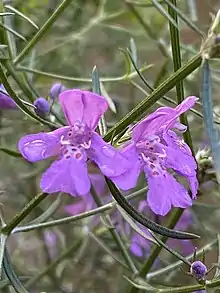 Westringia eremicola, commonly known as slender westringia or slender western rosemary,[2] is a flowering plant in the family Lamiaceae and is endemic to eastern Australia. It is a small shrub, with narrow leaves and pink, mauve to white flowers.