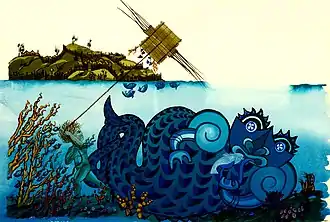 One day Apakura threw her apron into the sea, and a sea atua named Rongotakawhiu took it and worked it into human form, and Whakatau was born. The atua taught him the arts of enchantment. As the child grew older, people saw kites flying at sea, but could not see who held the strings. Whakatau loved to fly kites, and would run along the floor of the ocean with his toy. One day, he came ashore and the people tried to catch him. Whakatau was too fast a runner and would let no one catch him except his mother Apakura. He then lived on land with her, and grew up into a famous hero.[1]