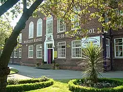 The school was founded in 1891, and was bought by the Education Committee of the Corporation in 1908 when it provided place for 300 girls. A few years later it was extended by the purchase of Alder House and the number of places were increased to 370. Girls were then admitted at the age of six and the curriculum allowed for education up to the matriculation standard and modern languages were well catered for.[2] It became a grammar school in 1944 and a comprehensive school in 1967. It was until 1939 at a site in Withington Road, adjacent to College Road.[3] The present building was built in 1939 in the Neo-Georgian style (architects: City Architects) and it was extended in 1962 and 1997.[4]