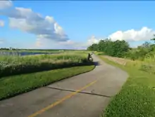 Whalon Lake provides access to a 3.71 miles (5.97 km) paved path that is in the northern part of the Dupage River Trail. The trail offers uses such as biking, walking, running, cross country skiing, snowshoeing and in line skating.[11]